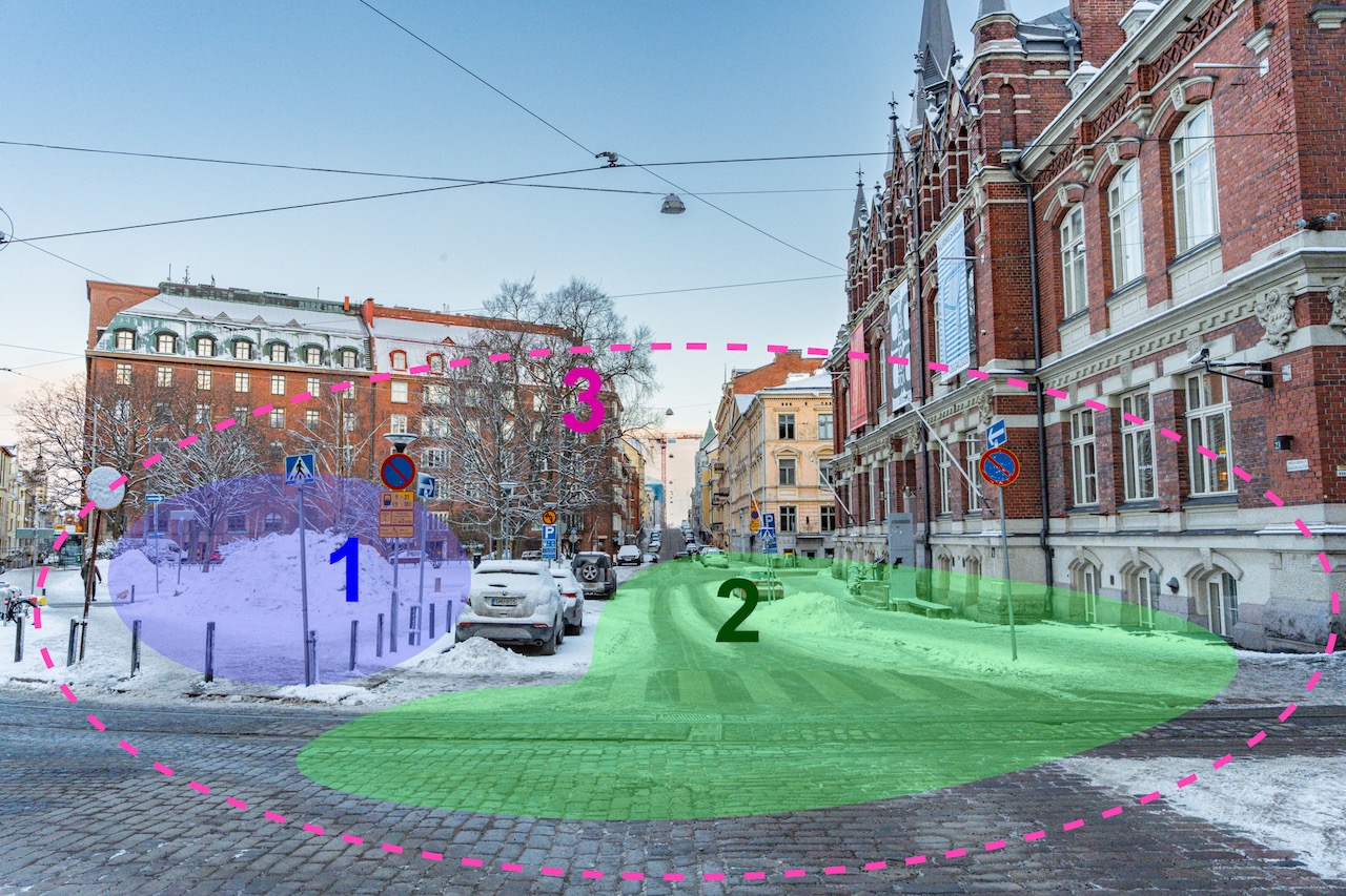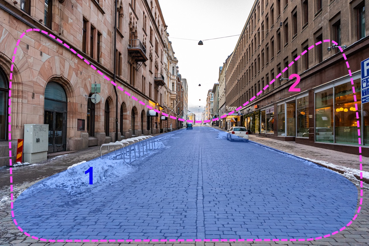 Mark the area you want to change and select a target feature in step 2. You can then save the results, continue working on the results (e.g. change partial areas) and/or try out other starting images.